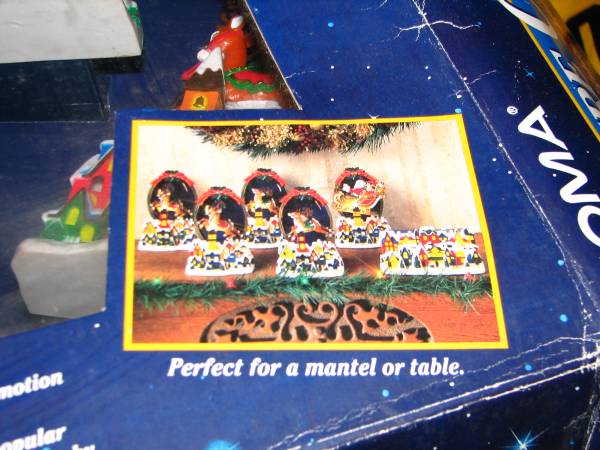 The 5 piece set, with decorative control box, plays 7 popular Christmas songs as Santa and his 8 reindeer glide through the sky over softly lit Victorian villages.