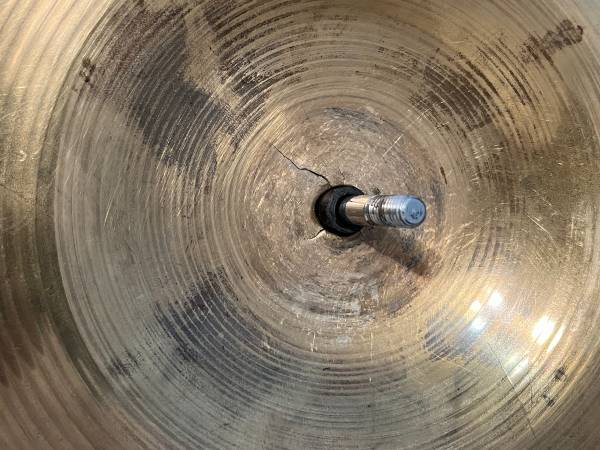 This is a vintage 21" Avedis Zildjian (Constantinople CIE) ride cymbal. It has some cracking/splitting at the bell-hole (see photos). This cracking seems to have no impact or effect on the cymbals sound or performance. Weight is 2400 grams.